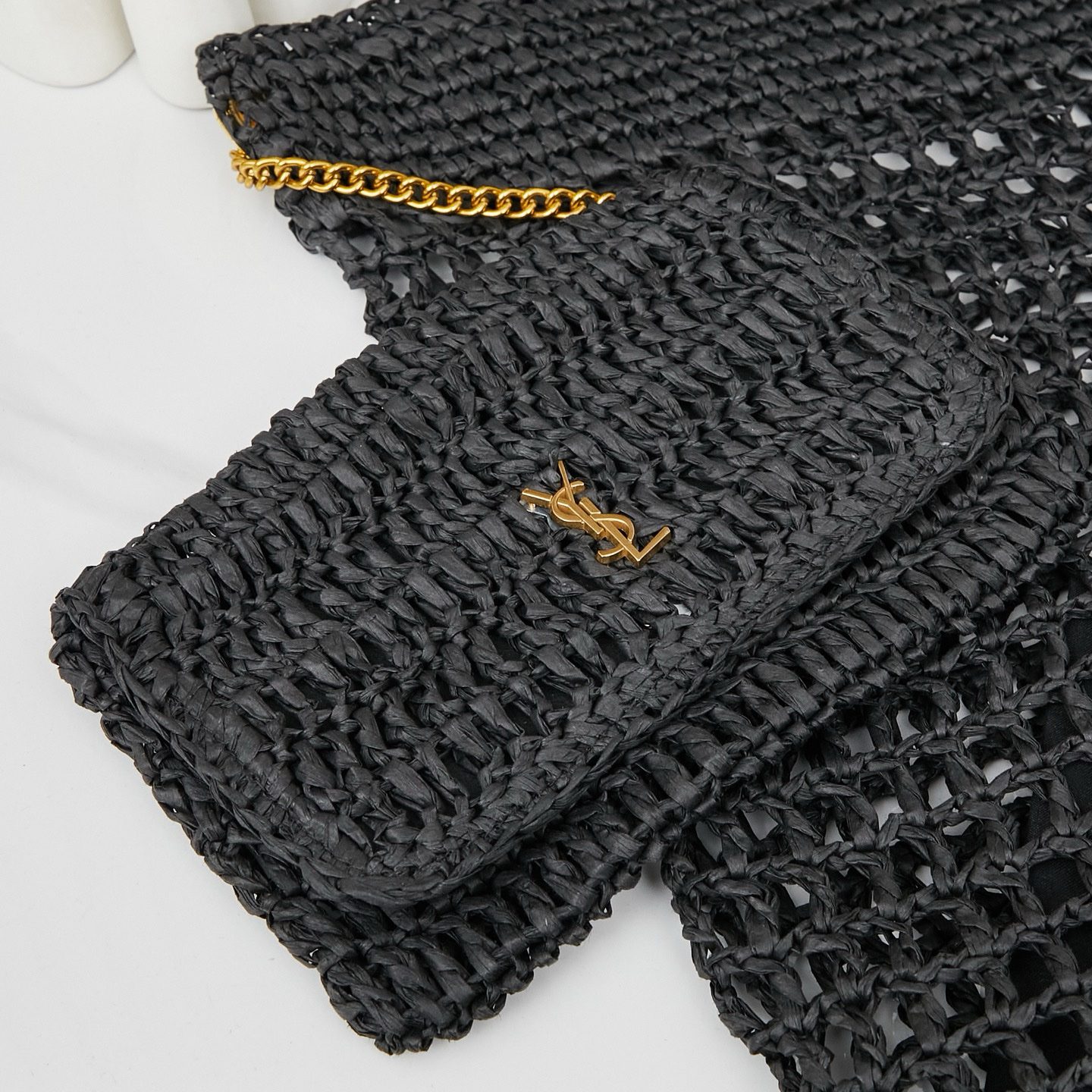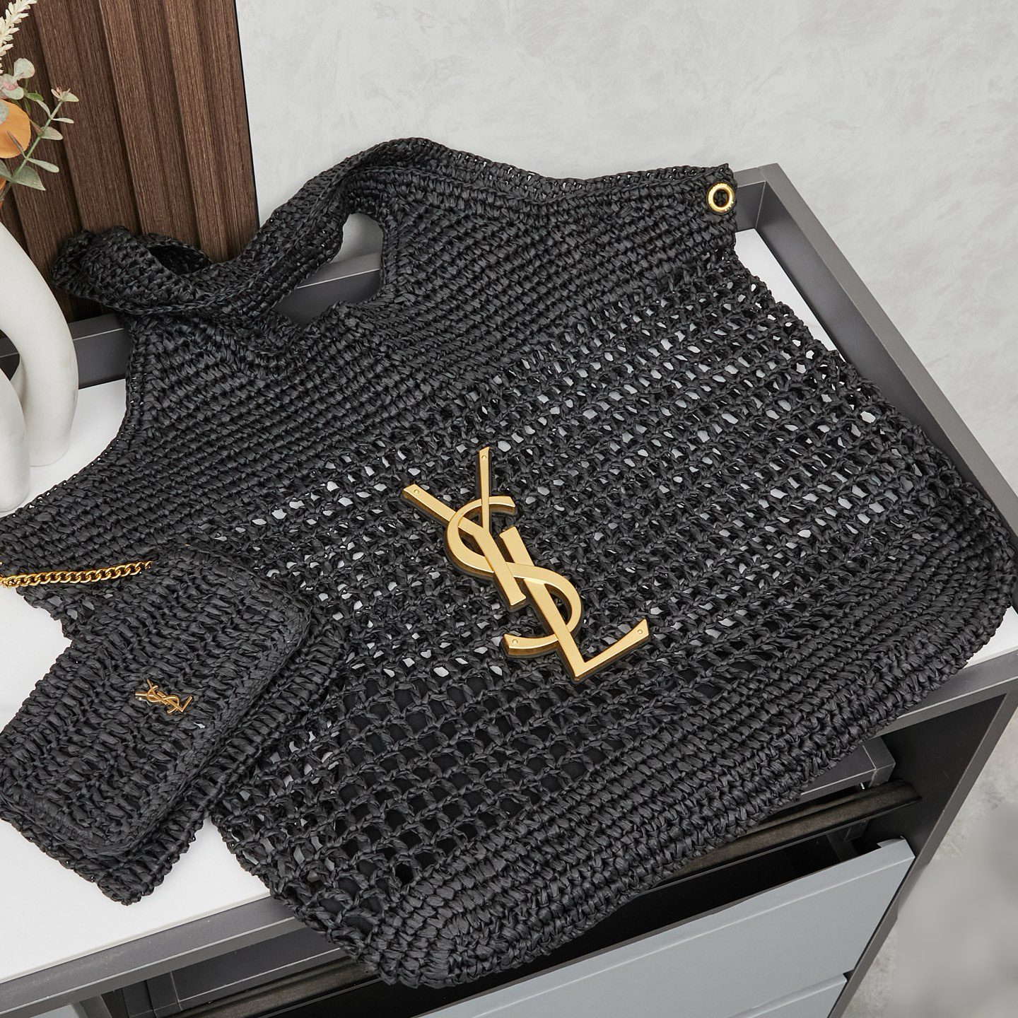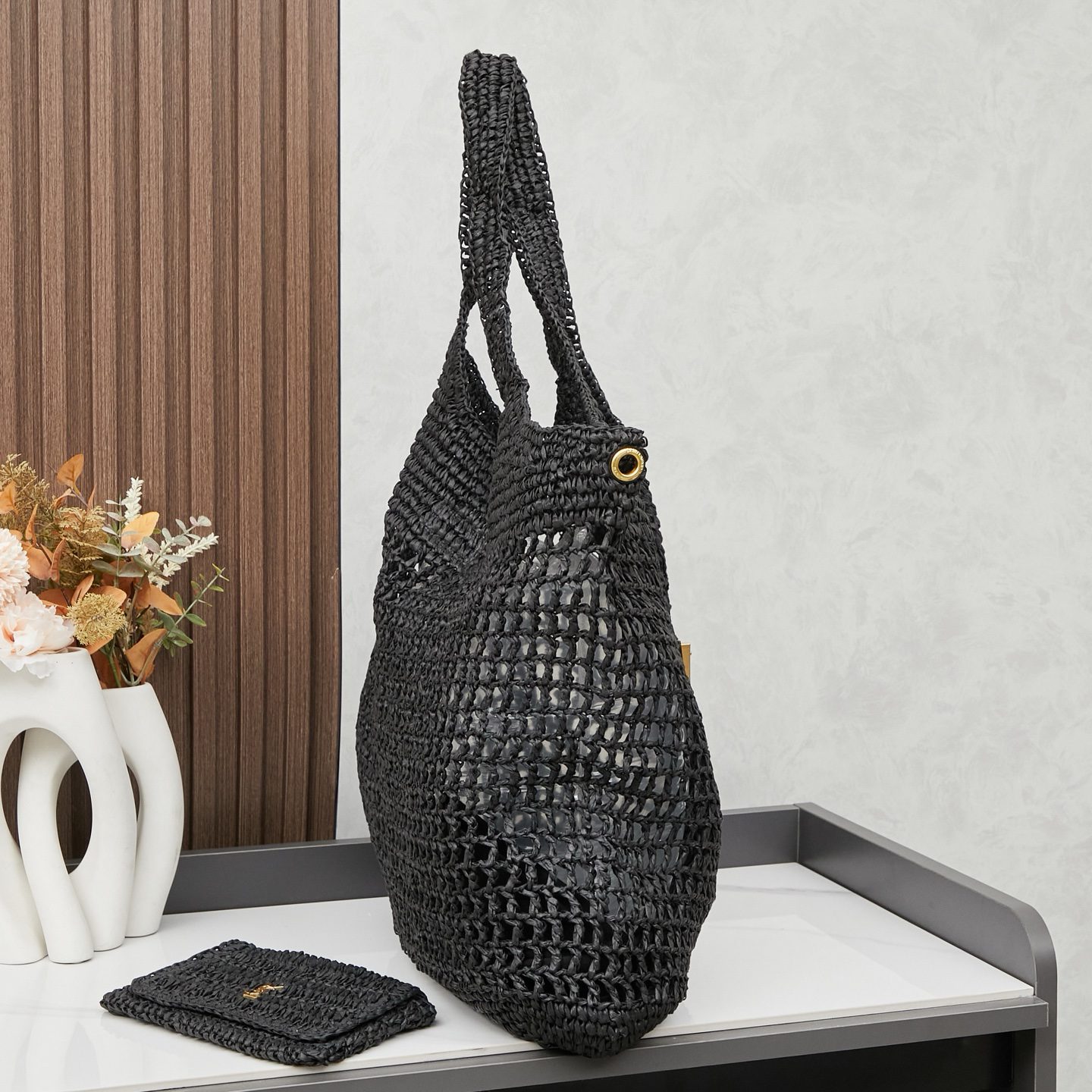 Black Saint Laurent Raffia Tote: Luxury Summer Bag with Pouch