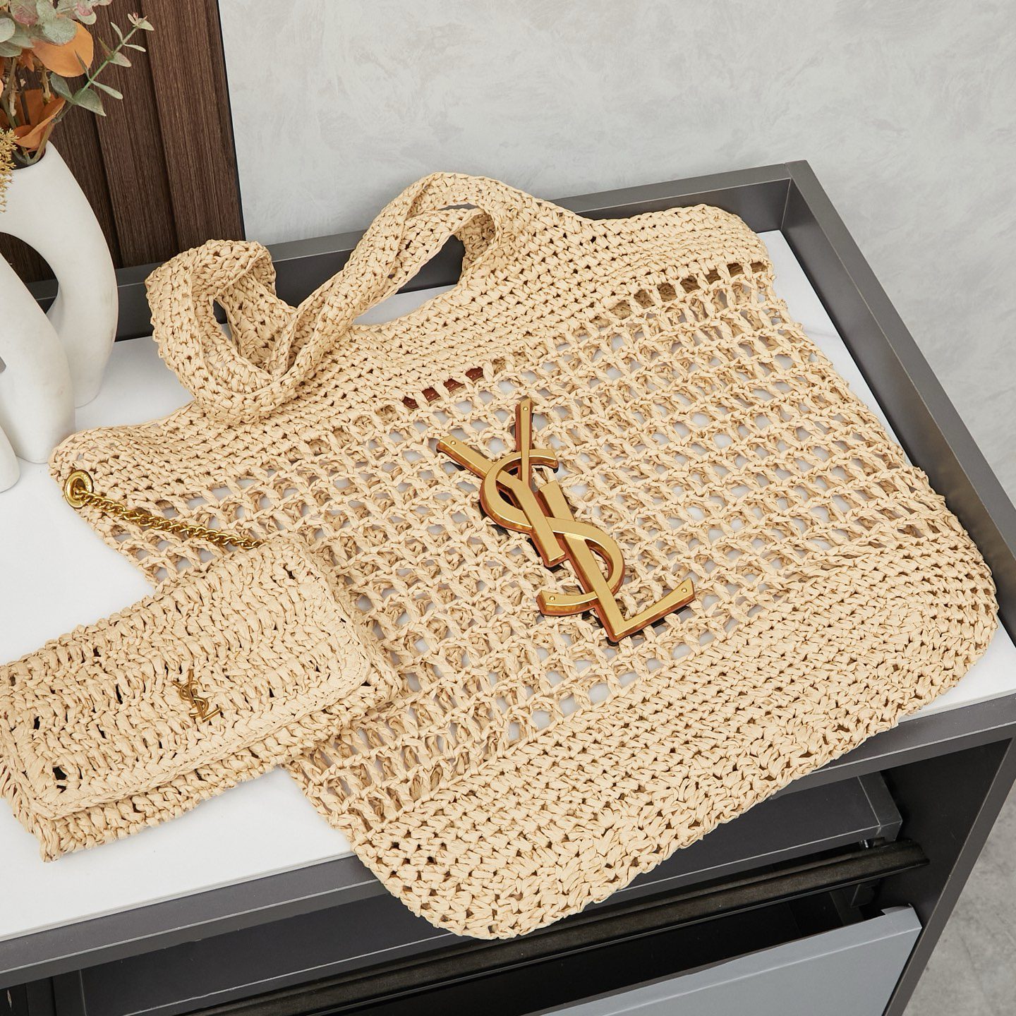 Investing in a Saint Laurent Raffia Tote Bag ensures you possess a versatile item that works beautifully for resort stays or stylish city strolls. The lightweight weave and matching pouch protect your essentials while maintaining a sleek, polished aesthetic. Get your Saint Laurent Raffia Tote Bag today and experience the pinnacle of luxury summer fashion.
